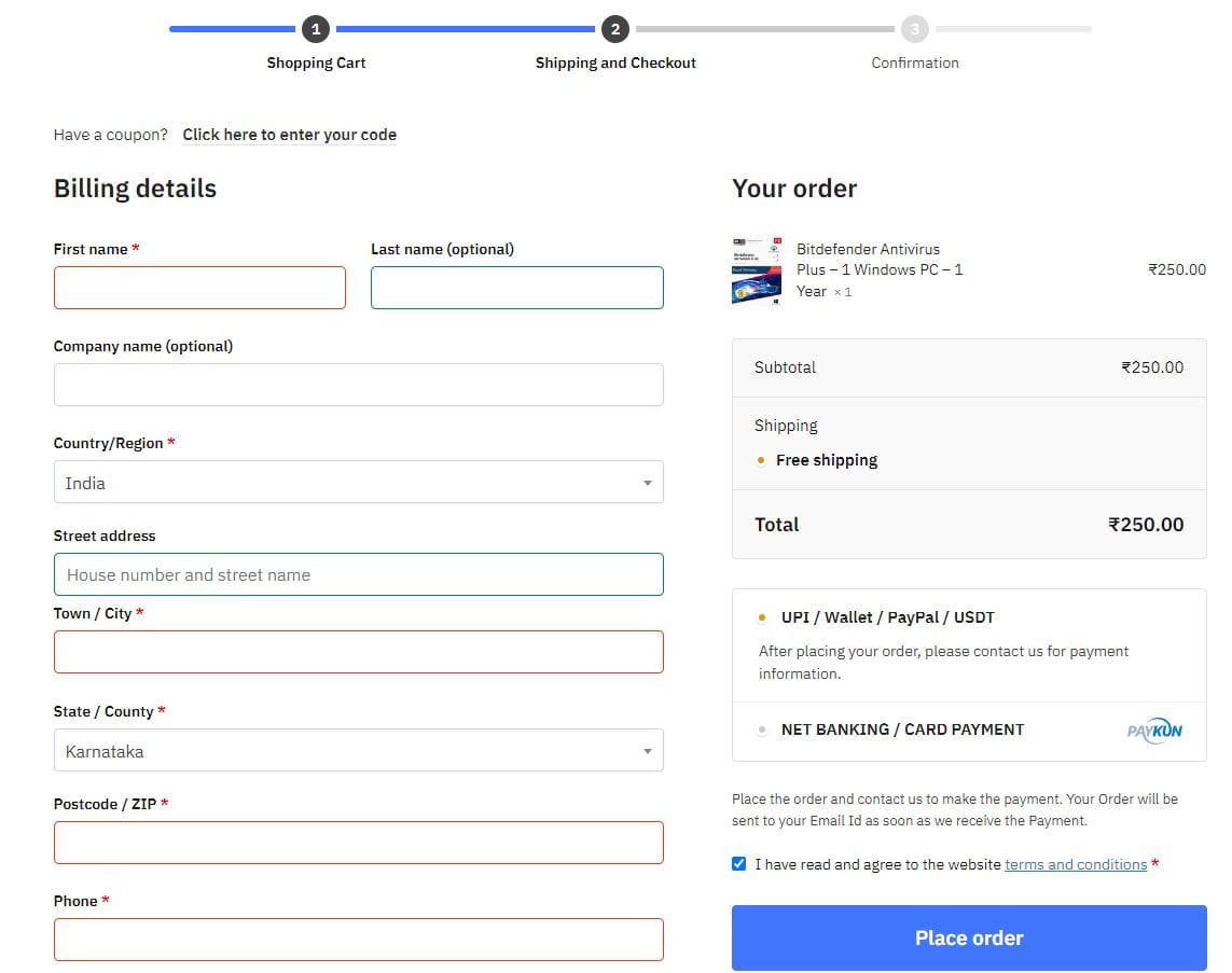 As soon as the order is successfully placed, the Order ID will appear. Reach us with your Order Number ( Via Email or WhatsApp). We will share the payment details.